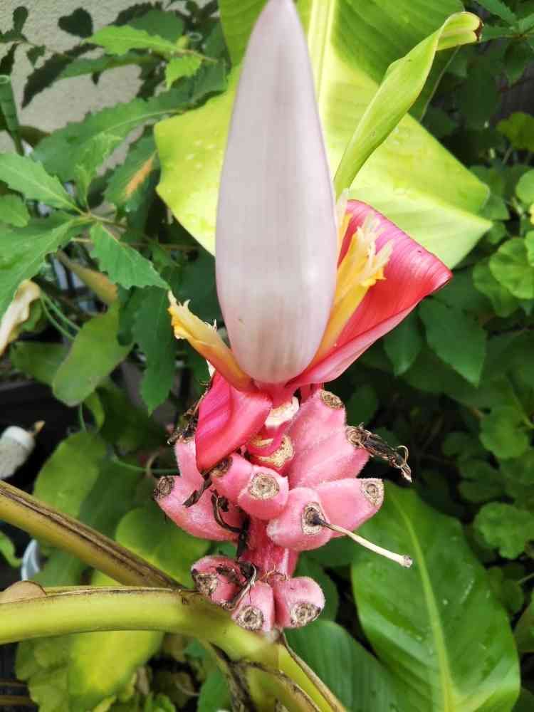 @りえ さん 黄色のが花で、白い先端部がつぼみというべきか🤔💦 下の方が先に咲いた所で根本が膨らんでピンクの実がなってます。