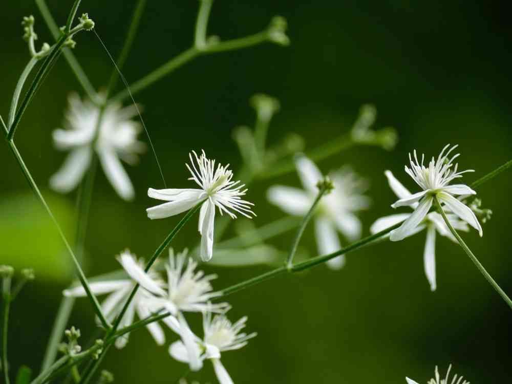 萼片4枚の白い花を咲かせるつる性の多年草。