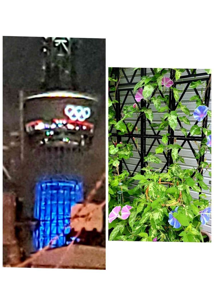 左:東京スカイツリー特別ライティング、五輪マークが付いています。📷 2021.7.30 pm9:30