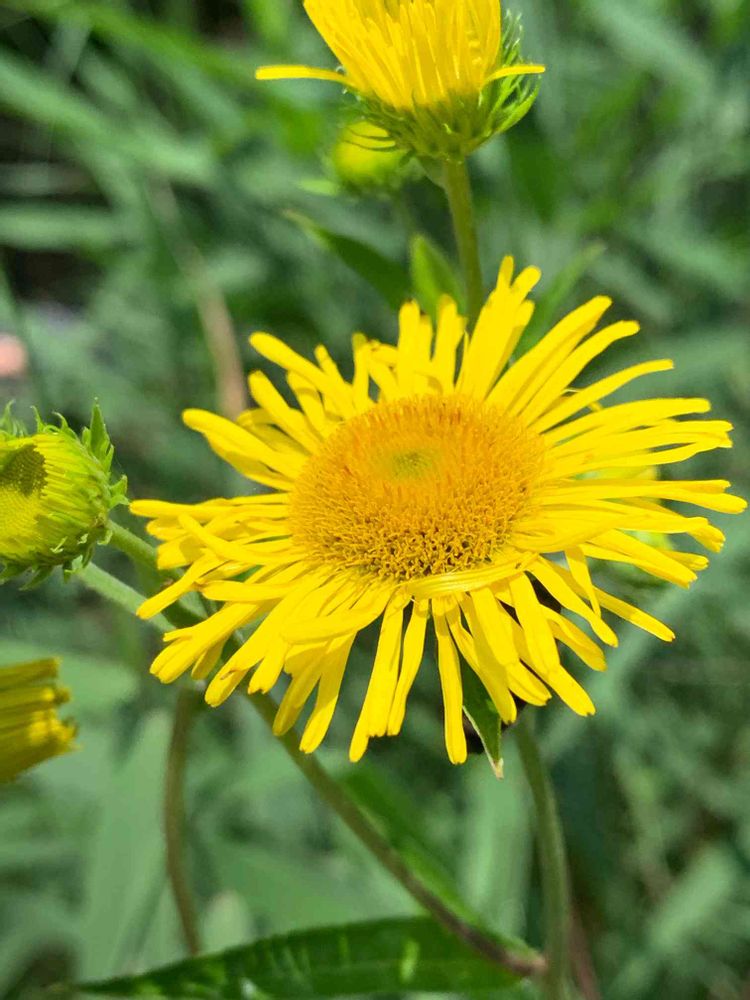 整然と並ぶ細い舌状花を金の小さな車に見立てます。🤗✨🏅