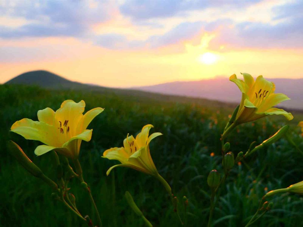 暮れ行く 阿蘇高原のユウスゲです🎵
