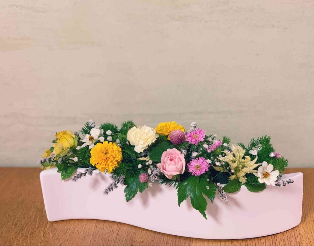 学校から持ち帰ったお花が短かったので小さくいけてみました。
