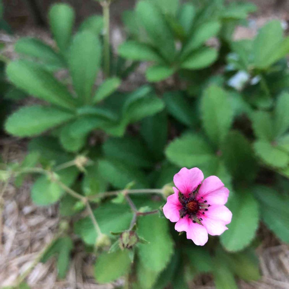 ポテンティラ ヘレンジェーン。暴れん坊のこの子ですが、暑さに負けずぴょーーーんと四方八方に伸ばした茎からお花を咲かせています。