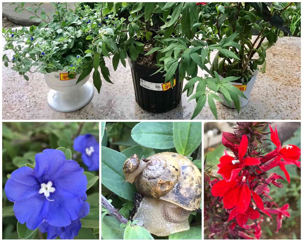 アメリカンブルー大好き💙がたまりません。カタツムリさんの親子珍しいですね❗