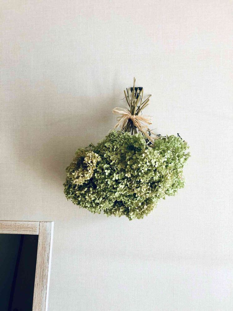 アナベルのドライ💚白い壁に素敵に飾ってますね〜✨💓✨