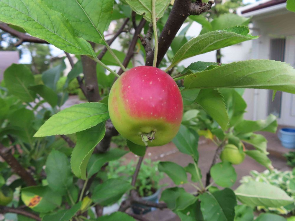 こちらは観賞用のミニ林檎で、大きくなっても直径6cmほど。