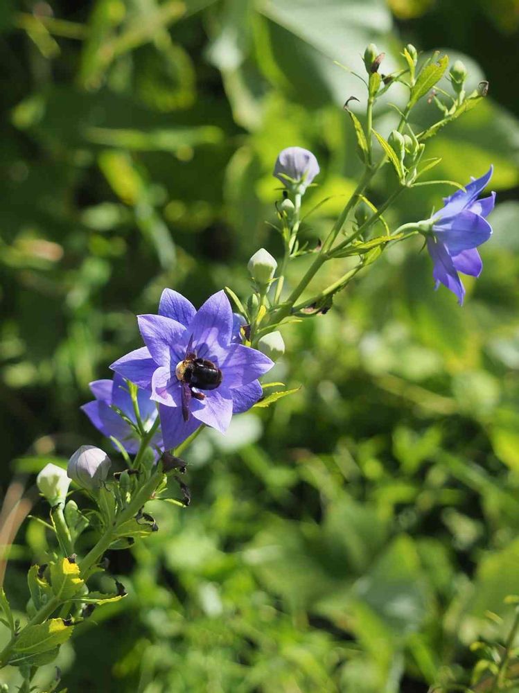 二重咲きのキキョウにクマバチさんが頭を突っ込んでいます〜🤭