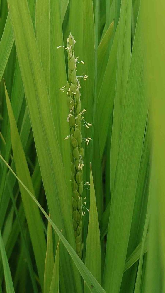 こちらのは品種までわかりませんが稲穂の先が少し頭を下げています。