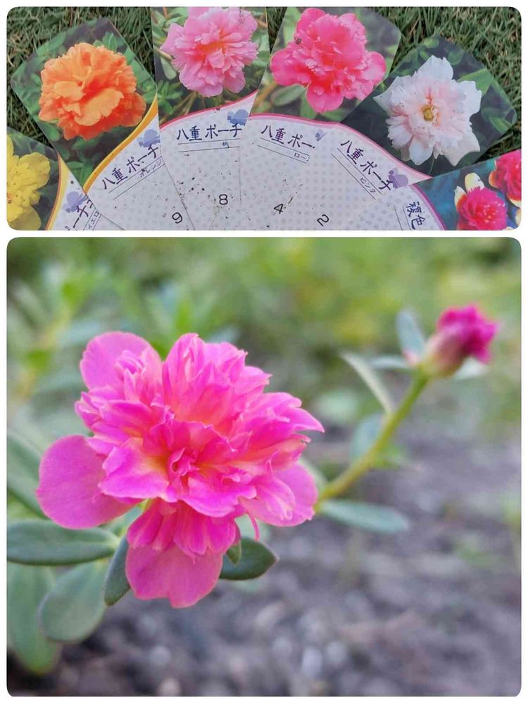 そうなんです!498円398円のお買い得商品がさらに見切り品になって‼️しかも八重咲き🎵仕事帰りの自転車だけど💦荷台に縛り付けてお持ち帰りしました🚲️花壇ではポーチュラカの広がる感じがあまり好きではないんですが、グランドカバーとして植えたのでどんどん広がれ~って感じです😆今日も一日頑張りましょう!
