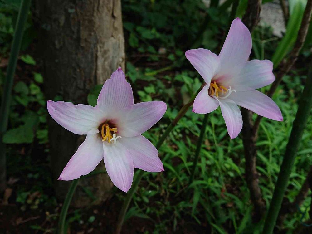 ハブランサス・・・でしょうか?。背丈が大きく、葉っぱは後出しです。