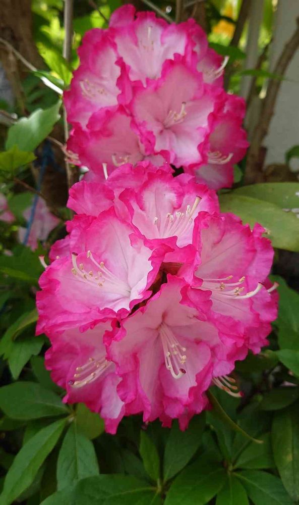 ピンクの覆輪のシャクナゲ、プレジデントルーズベルトの花、とても素敵です✨✨