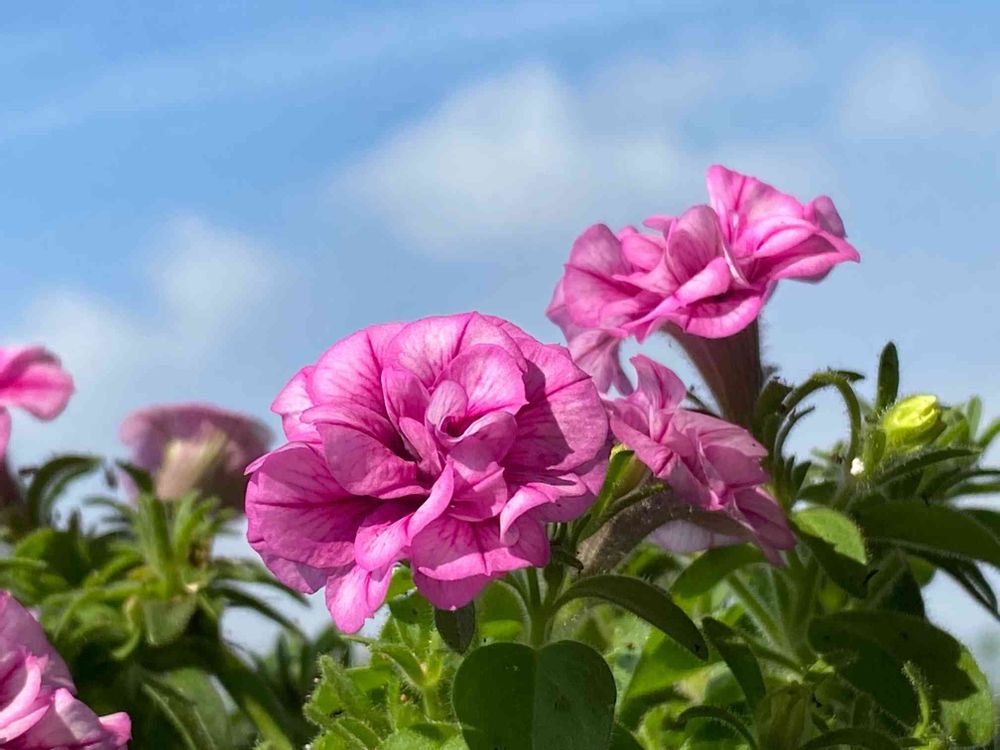 八重のペチュニア、やっぱり華やかです。わたしは、カリブラコアの、徒長したのを1つ買いました。育ったらいいなぁ。