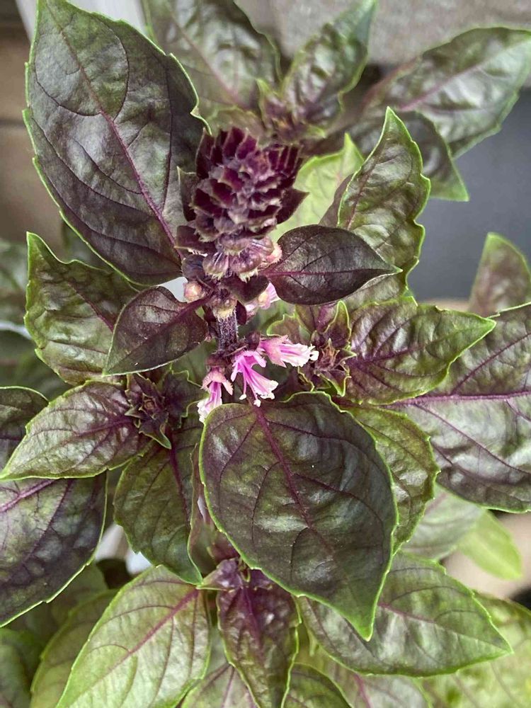 安くなってた紫のバジル。花がつきました。もっと紫だったのに、緑が強く出てしまっている…。
