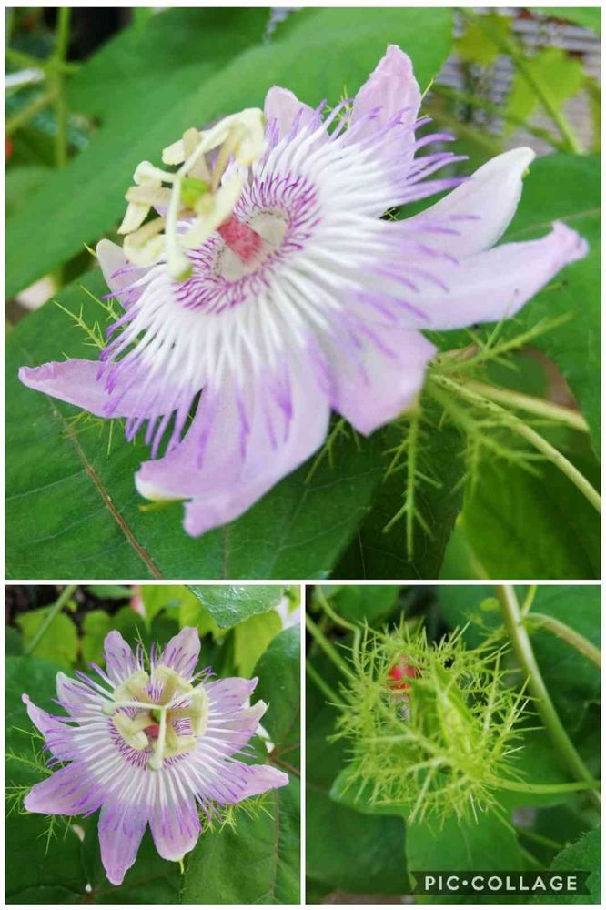 パッションフラワー???初めて見ました。時計草でもなくそれに比べると花の色合いがどぎつくないのがかわいいです。あれはあれで配色がはっきりしてますけどね。🌿💠 GSでも初めて見たような気がします。