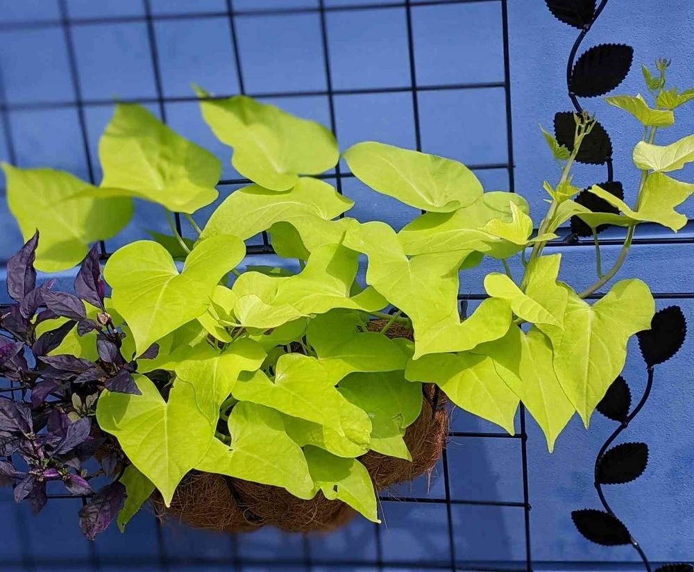 垂れ下がる予定でハンギングにしたのに、妙に上昇志向の強いテラスライムさん🌿🌿✨