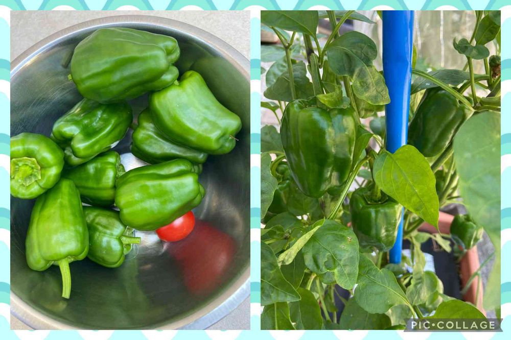成長が遅かったピーマンの収穫が始まりました🫑⤴︎晩ご飯はピーマンの肉詰めに決定🍳