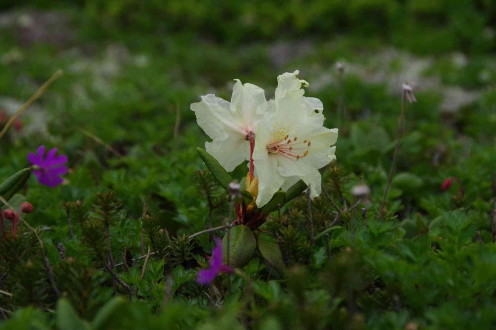 大雪山はキバナシャクナゲが群生します。樹木ですが、厳しい環境で育つからか地面から15センチぐらいのところで花を咲かせます。