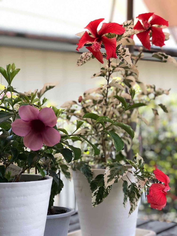小さな庭,アラマンダ ヘンダーソニー,ハイビスカス・スノーフレイク(斑入り)の投稿画像