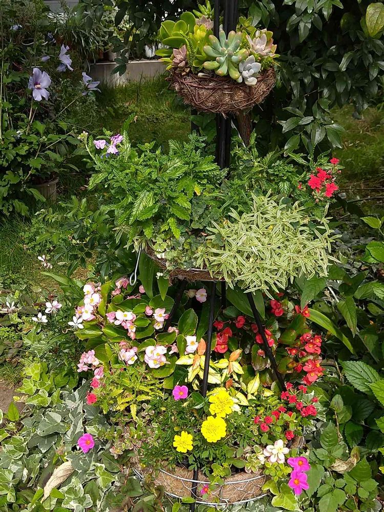 一番下の段のみ、鉢を入れ替え出来るようになっていて、お花が咲いているものを常時入れ替えています🤗