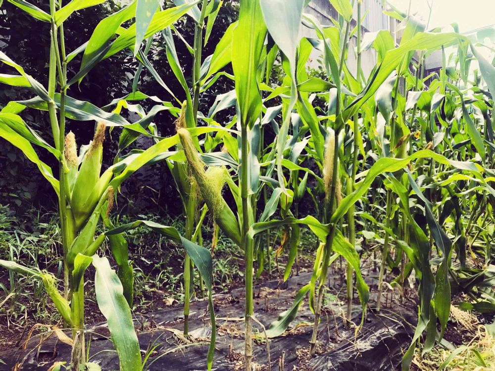 会社の奥の花壇で土づくりの一環で🌽栽培