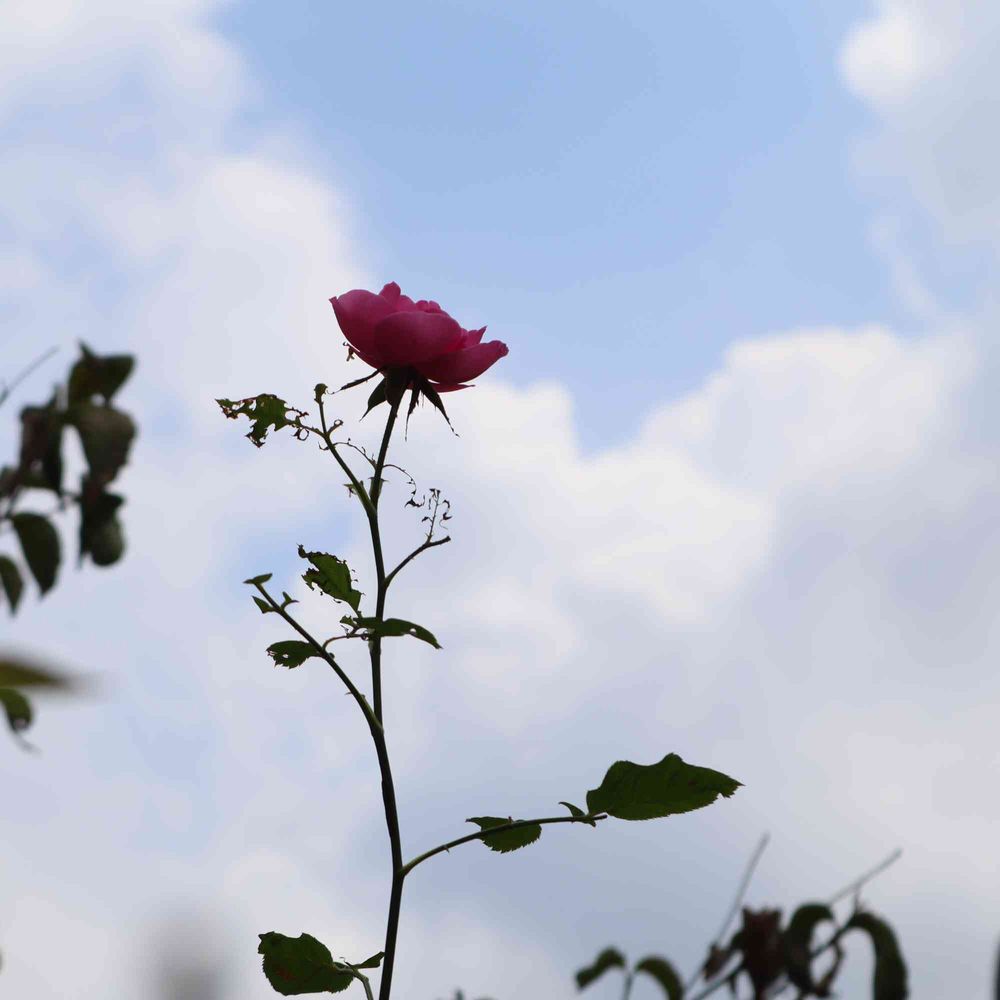 青空に凛とした立ち姿のバラさんショット、素敵です🌹✨