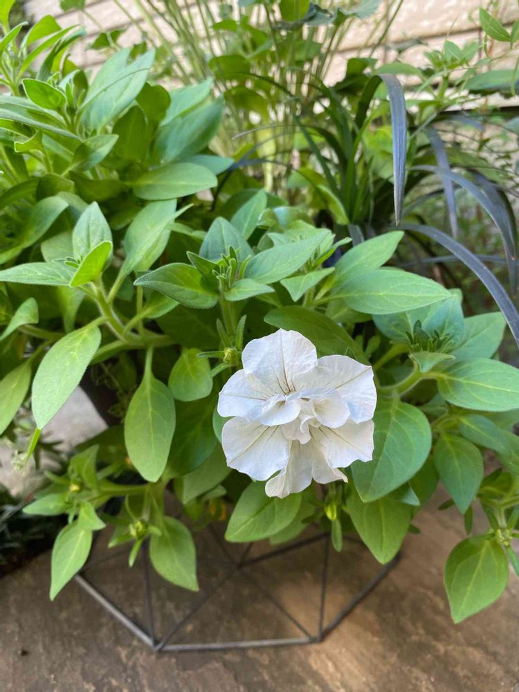 寄せ植えのペチュニアビバ、半信半疑の切り戻しからなんとか息を吹き返してくれた様子(´;ω;`)