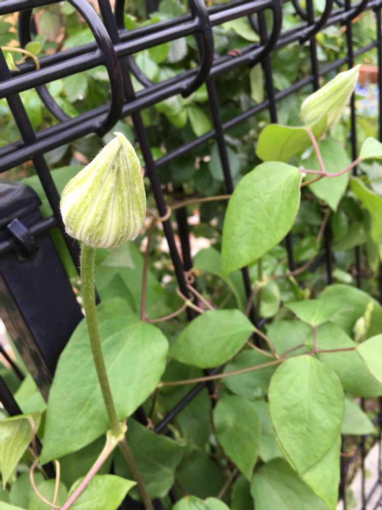 クレマチスのブルーライトの蕾めちゃめちゃ大きく膨らみました。こちらも秒読み状態
