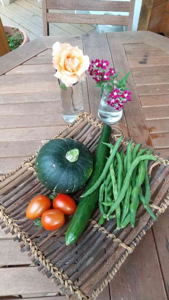 インゲン、キュウリ1本、ミニトマト3個😊💞