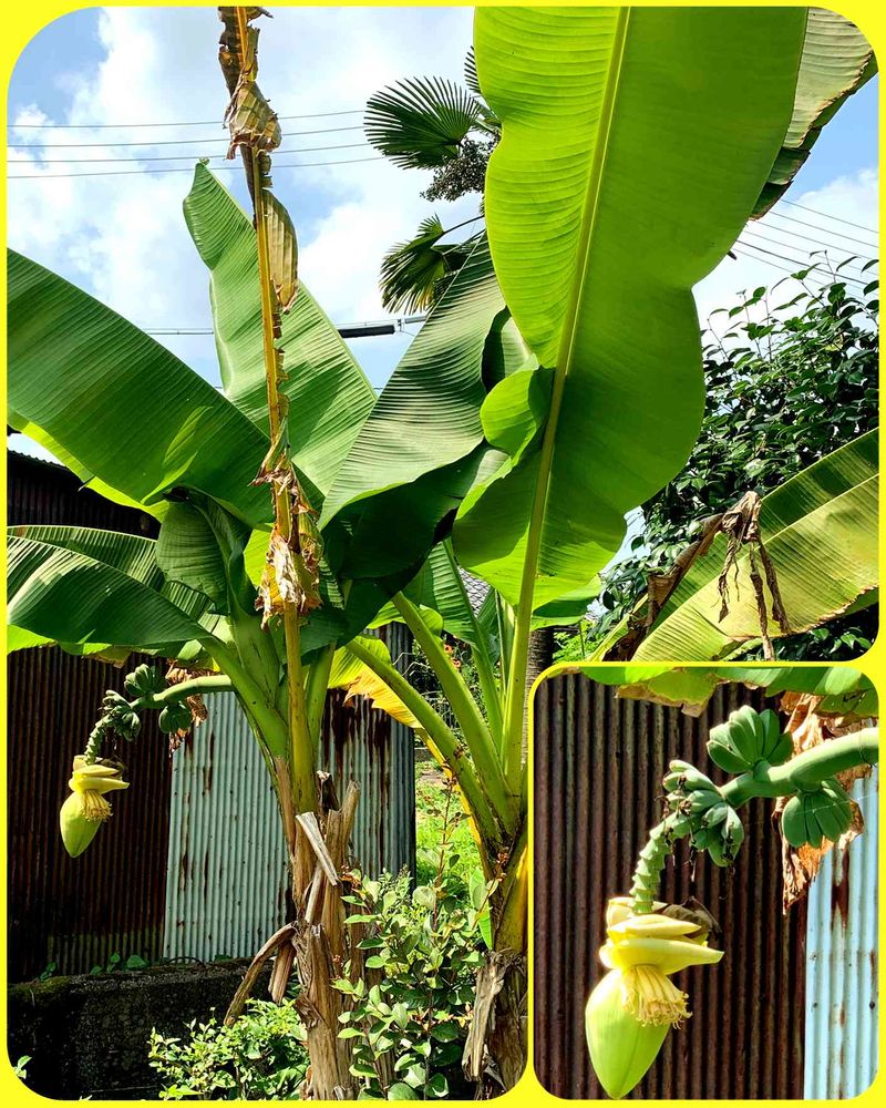 写真を見てたら、バナナの木にバックのトタンの小屋の外壁、日本や無いみたいな光景ですが、他のユーザー様に教えていただき、バナナでは無くて、芭蕉と言う植物だそうです。バイクとの違いは、苞と言う部分がバナナは赤紫で、芭蕉は黄色だそうです。これは黄色ですからね。バナナなら家でも植えたいと