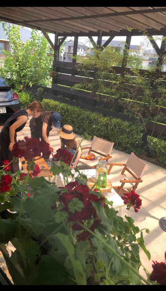 暑い中娘&お友達が楽しそうにバーベキューの準備をしている姿がほのぼのだったのでお部屋からゼラニウム越しに隠し撮り🤣🌺