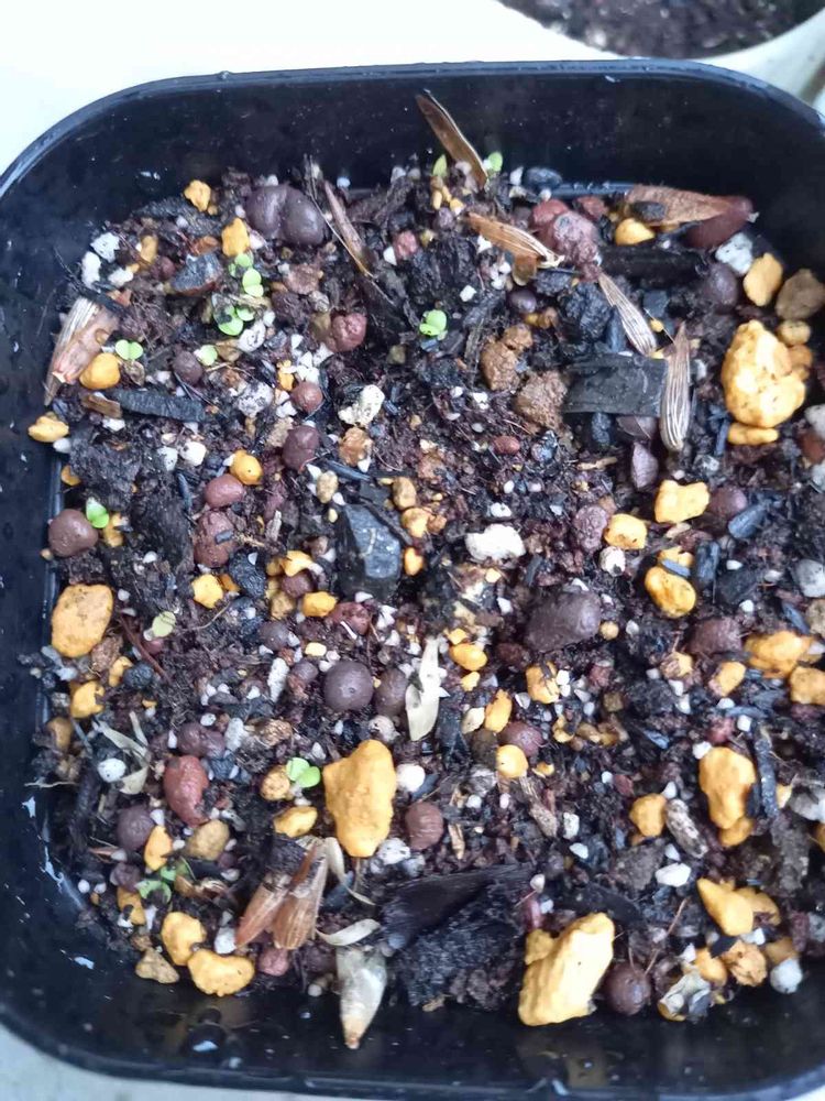 桜吹雪が咲き、その後に種ができ、種白いけど(。• . •。)?と思いながら、土の上にパラパラっと蒔いたら芽が出た🌱