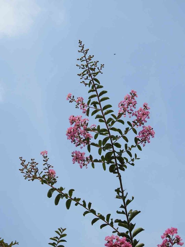 道すがら見た❗民家の庭先で青空とコラボする🌸百日紅の花🌸