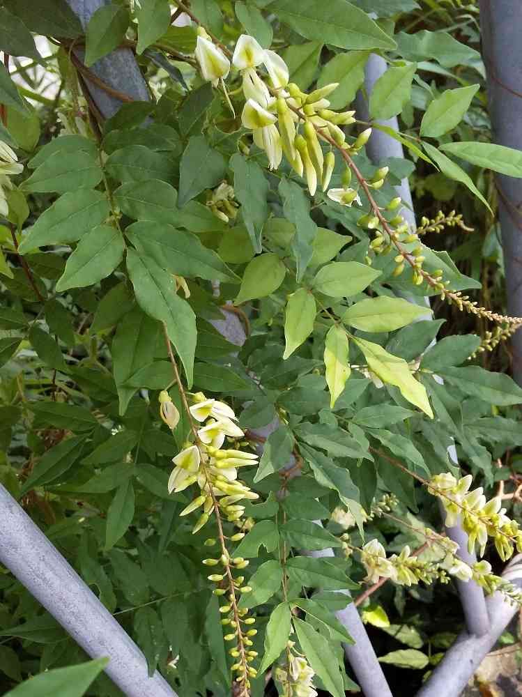 散歩道でフェンスに巻き付いているナツフジを見つけました。