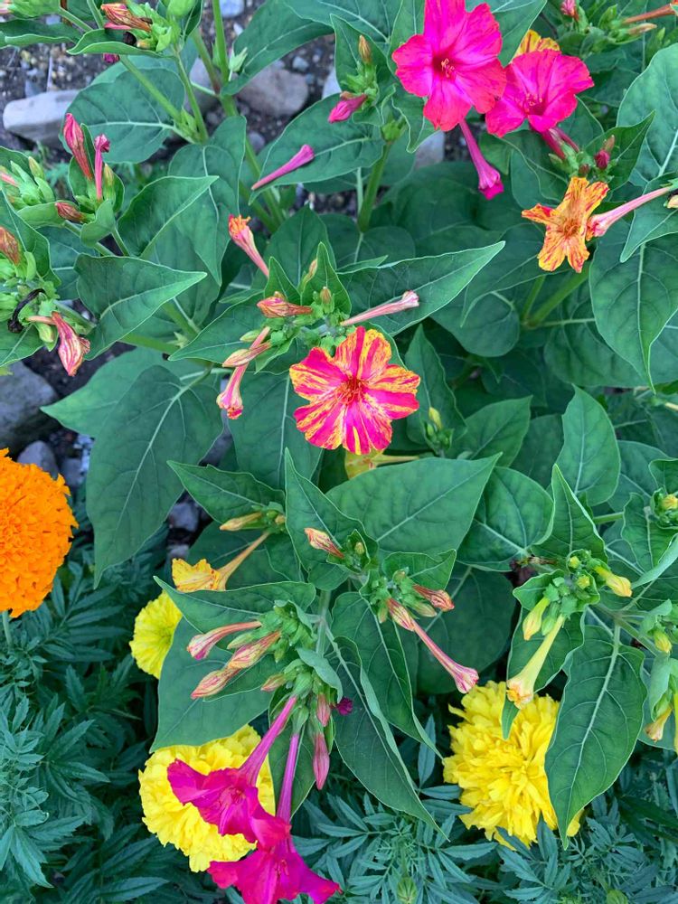 ど真ん中の濃いピンクとイエローミックスのオシロイバナ人生で初めて見ました。😳