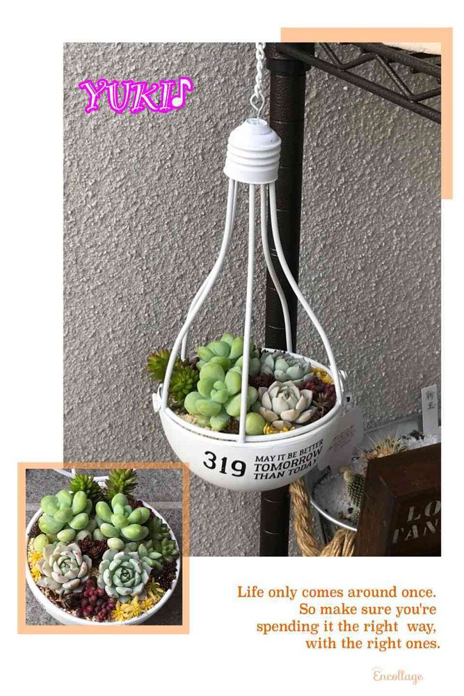 秋にとろさんからロハスのお土産に頂いた電球型の可愛い鉢💕どんな風に植えよう…どんな子を使おう…と思いながら数ヶ月💦ようやく植えることが出来ました😊可愛く出来たかな😅