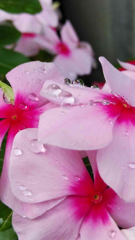 雨粒と日々草のコラボ素敵ですね‼️雨粒のなかに日々草が咲いている?のがめちゃくちゃかわいい🎀
