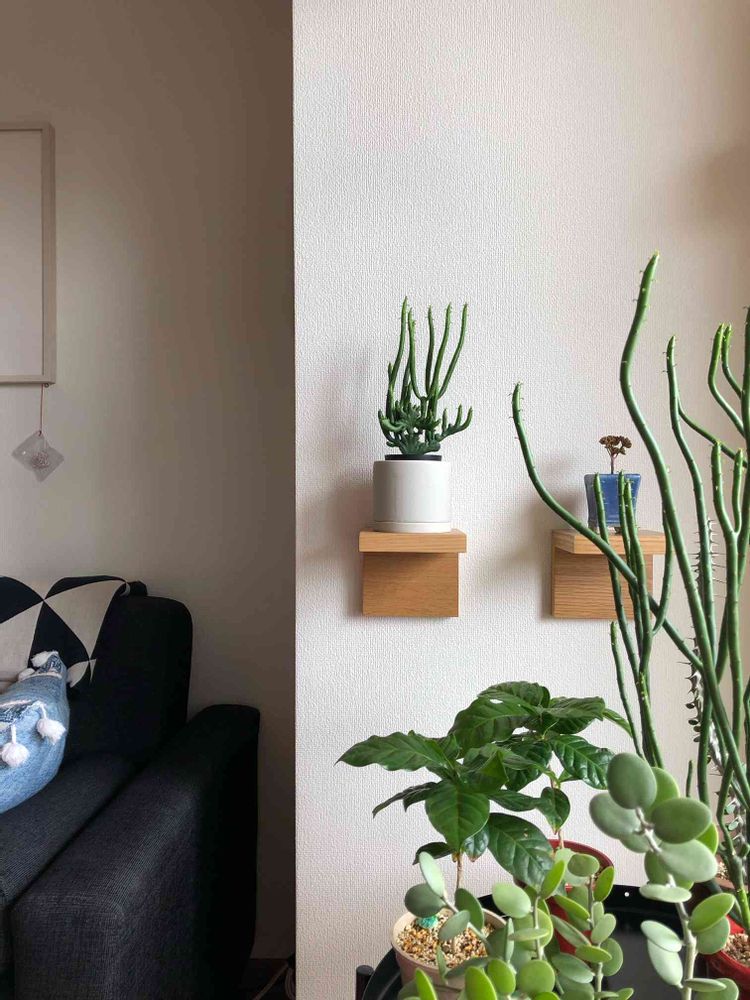 ラブリコ、板自体の奥行は1×6なので14cmなんですけど、フレームと壁の間に少し隙間ができるので、使える奥行は実質15cm程度ってとこかなと。今よりは少しだけ大きい植物が置ける予定です🌱🙋♀️