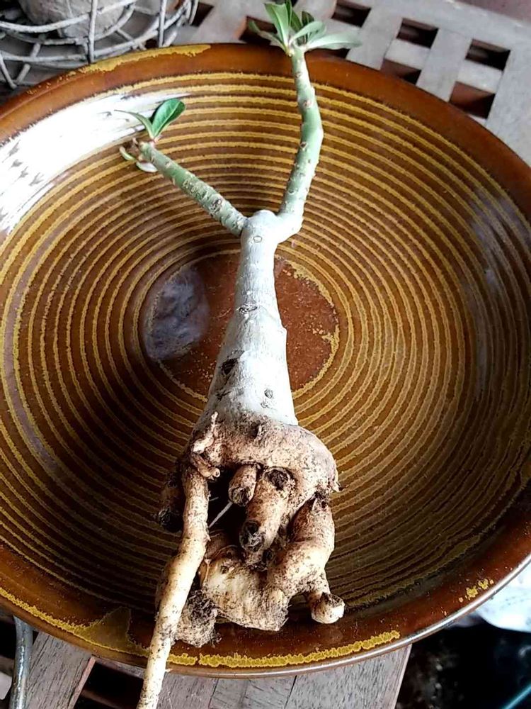 どうも調子がイマイチと思ったら根が腐ってた。幸い上部塊根は無事だったので乾かしてから再び植え付け。一度でいいから花を見せてほしいのよ。