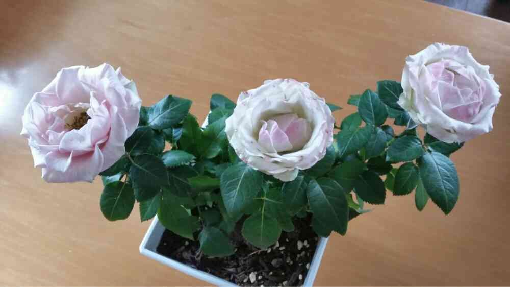 これ四姉妹で長女は購入時から開きかけだったのに咲かず末っ子は花びらの数が少なくてとっとと中央まで開いてバラっぽい良い香りするのに次女三女は未だに中央まで開かず香り全くなし😆