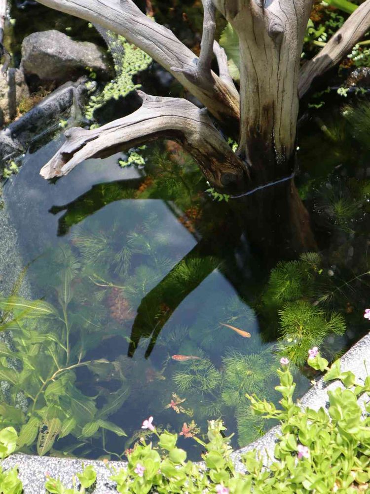 水の流れるプラ池とプラ舟のビオトープ