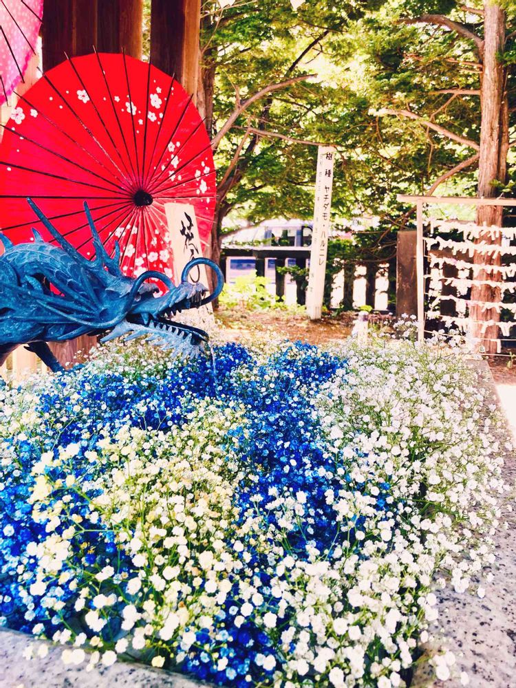 和傘もお花も龍も🎵