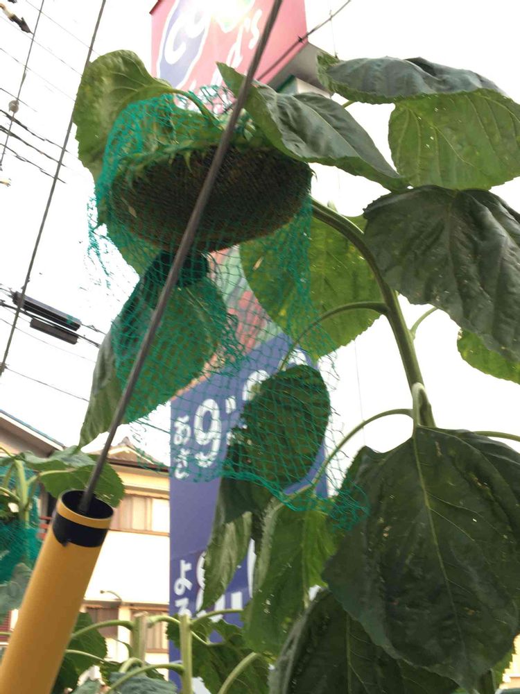 大きなひまわり第2弾です。頭重過ぎて電柱の横のワイヤーに頭載ってました。