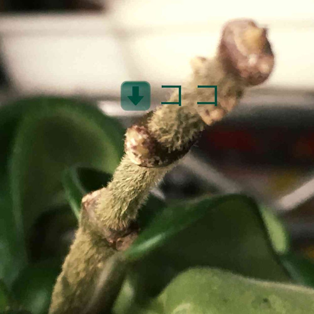 ☝🏻画像が見辛く申し訳ないのですが、印の節のところに何かが起きています。株元からわずか15㎝ほどの場所なので花芽ではないだろう思います。でも他の新葉とも違うような。モジャモジャしていて気になります😅