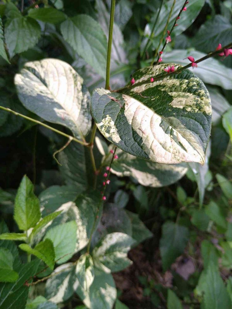 斑入りのミズヒキは、花より葉を楽しんでいます😊