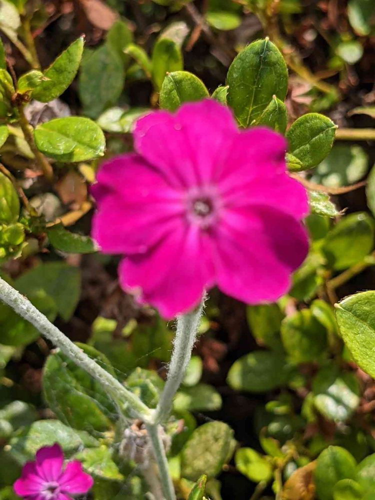 民家の生け垣から覗く❗可愛い🏵️スイセンノウの花🏵️