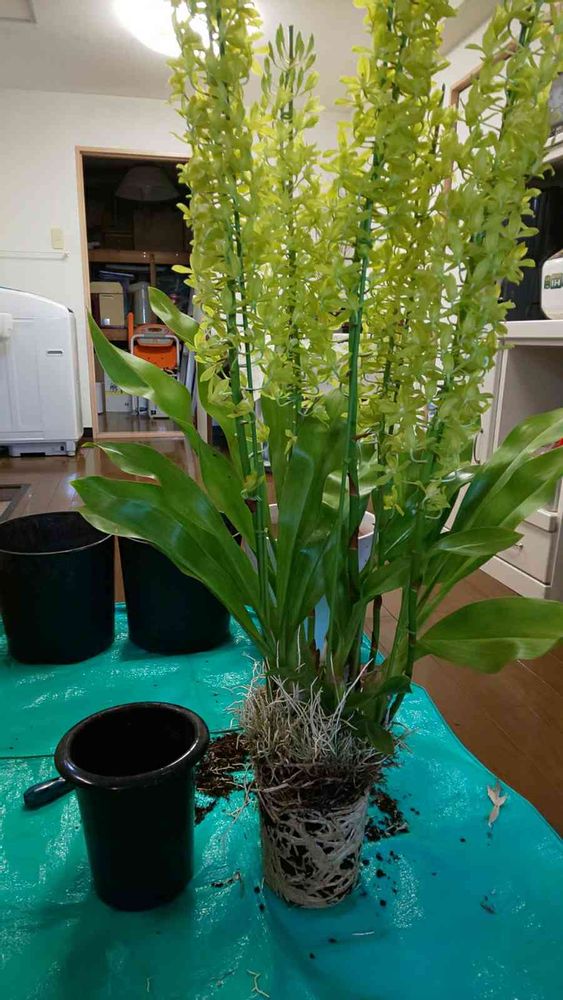 購入したグラマトフィラム。鉢一杯に根が成長していたので、植え替えることに。