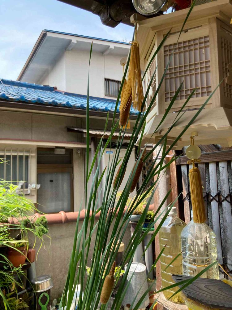 今年初盆なので、早めに吊燈籠を出しました。