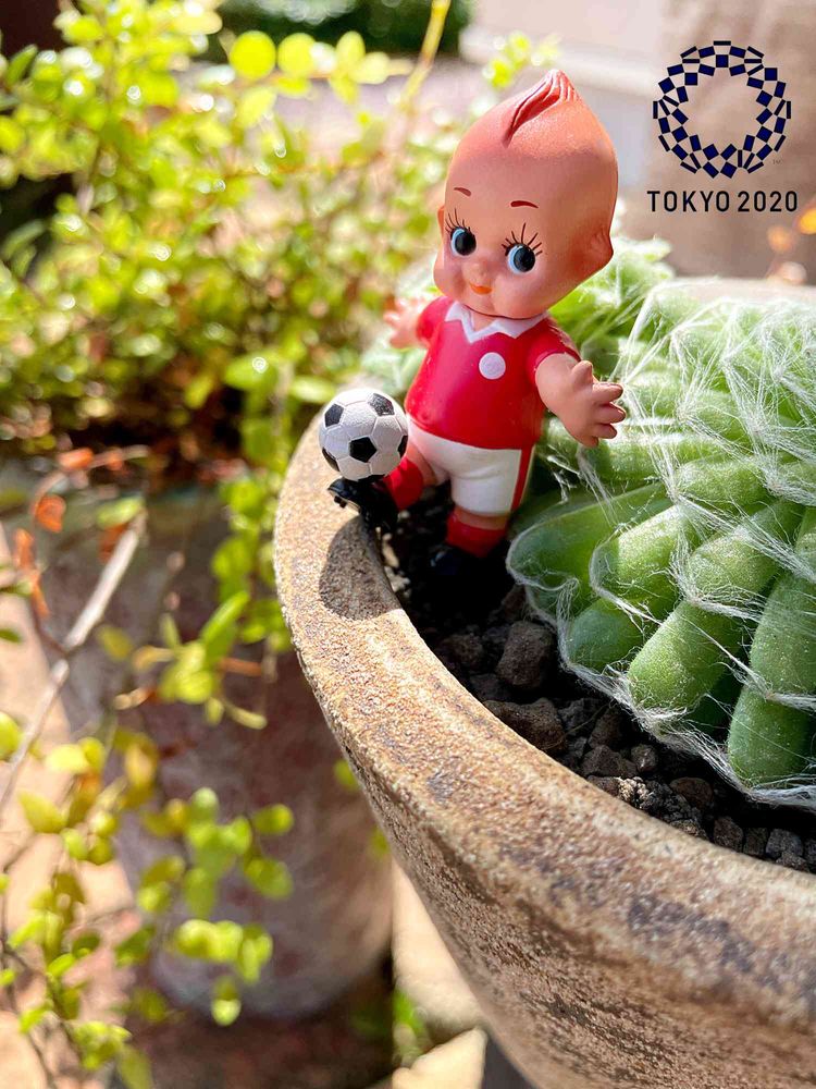 センペルの巻絹ちゃんの横でサッカーしてるオリンピックキューピーちゃん⚽️