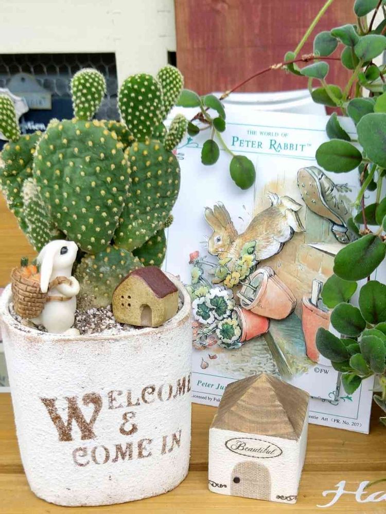 シャドーボックスのピーターさんも可愛いですね💕鉢を蹴飛ばしちゃったのかな?(*´艸`*) 逃げ足早そう🐇🌬
