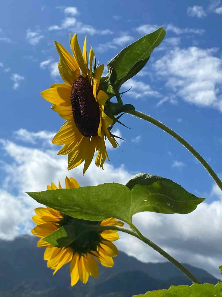 青い空と黄色のひまわり、コントラストが良いですね👏